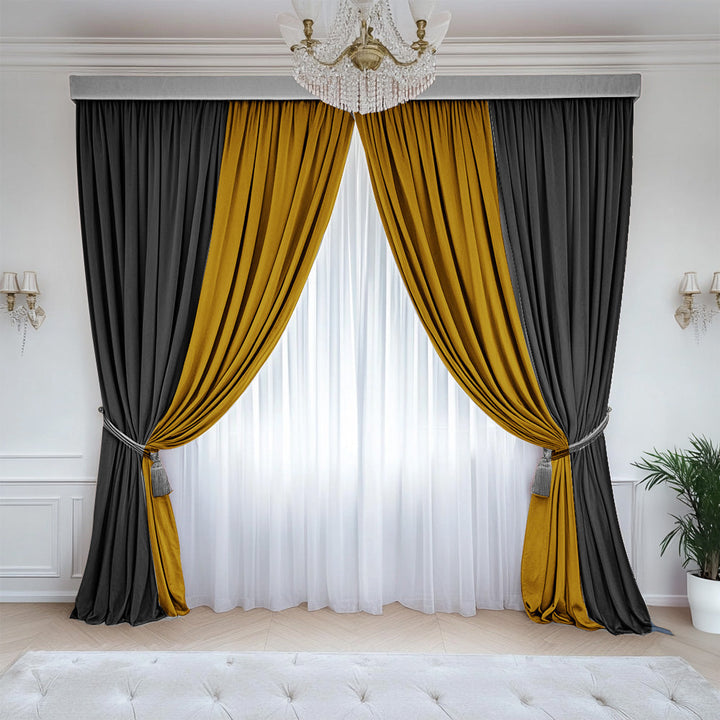 Set 2 draperii de Catifea Duo Gri Mustar 70% Opaca - Cu Rejansa
